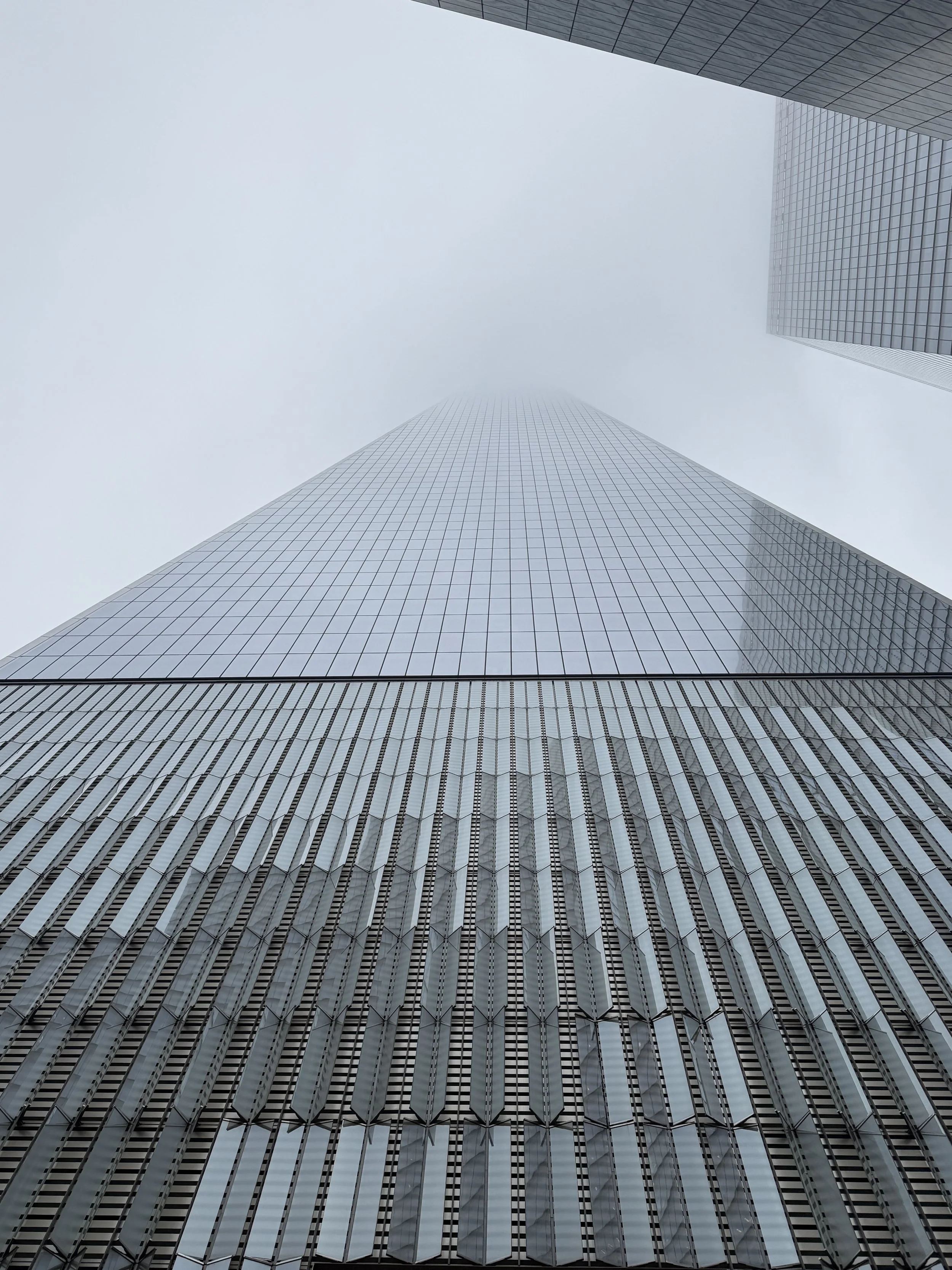 On the brightest day you can’t see the up of One World Trade, but on cloudy days, instead of a vanishing point where the lines converge, the building just fades into the sky as piercing through it infinitely.